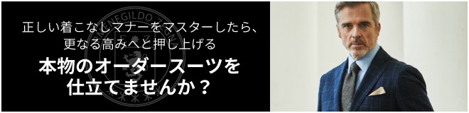 乗馬服からモーニングコート、さらに現代のスーツへと進化を遂げながらも一番下のボタンは留められることがなかった「捨てボタン」ですが、大きな意味を持っているディテールであることは間違いないようです。