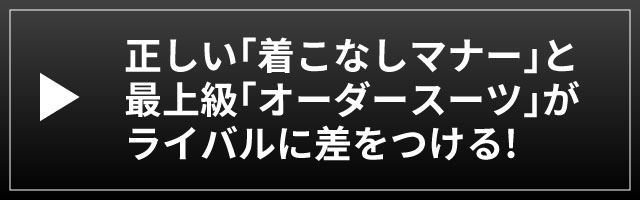 都会のビジネスパーソンも普段はストレートにスーツを着こなし、TPOに合わせて着こなしに変化を与えるのも大切です。風が強ければ襟を立て、立ってスピーチするときは一番下のボタンまで留めるか逆に全部開けて、アクティブに見せるなど、着こなしに変化を与え自分を演出することも時には大切です。それが本当の意味での着こなしなのかも知れません。