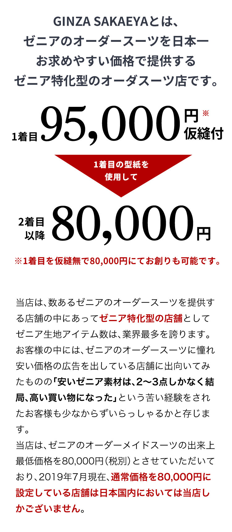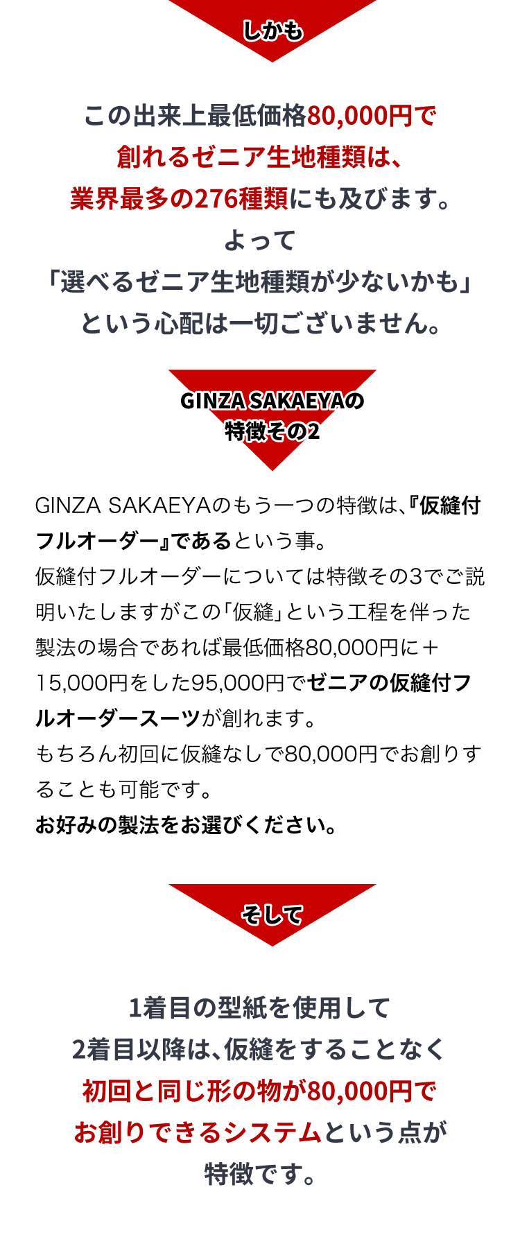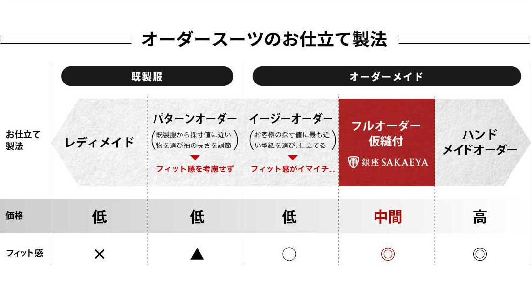 一般的なオーダースーツとは似て非なるGINZA SAKAEYAの仮縫付ゼニアの「フル」オーダー。身体に合ったスーツとは、サイズを合わせるだけではありません。個々によって異なる身体のクセを見極め、スーツに反映させることで完成します。そのための重要な工程が「仮縫い」です。たった一度の採寸データだけで作るパターンオーダーでは実現不可能な、すべてにおいて完璧な1着をお約束いたします。