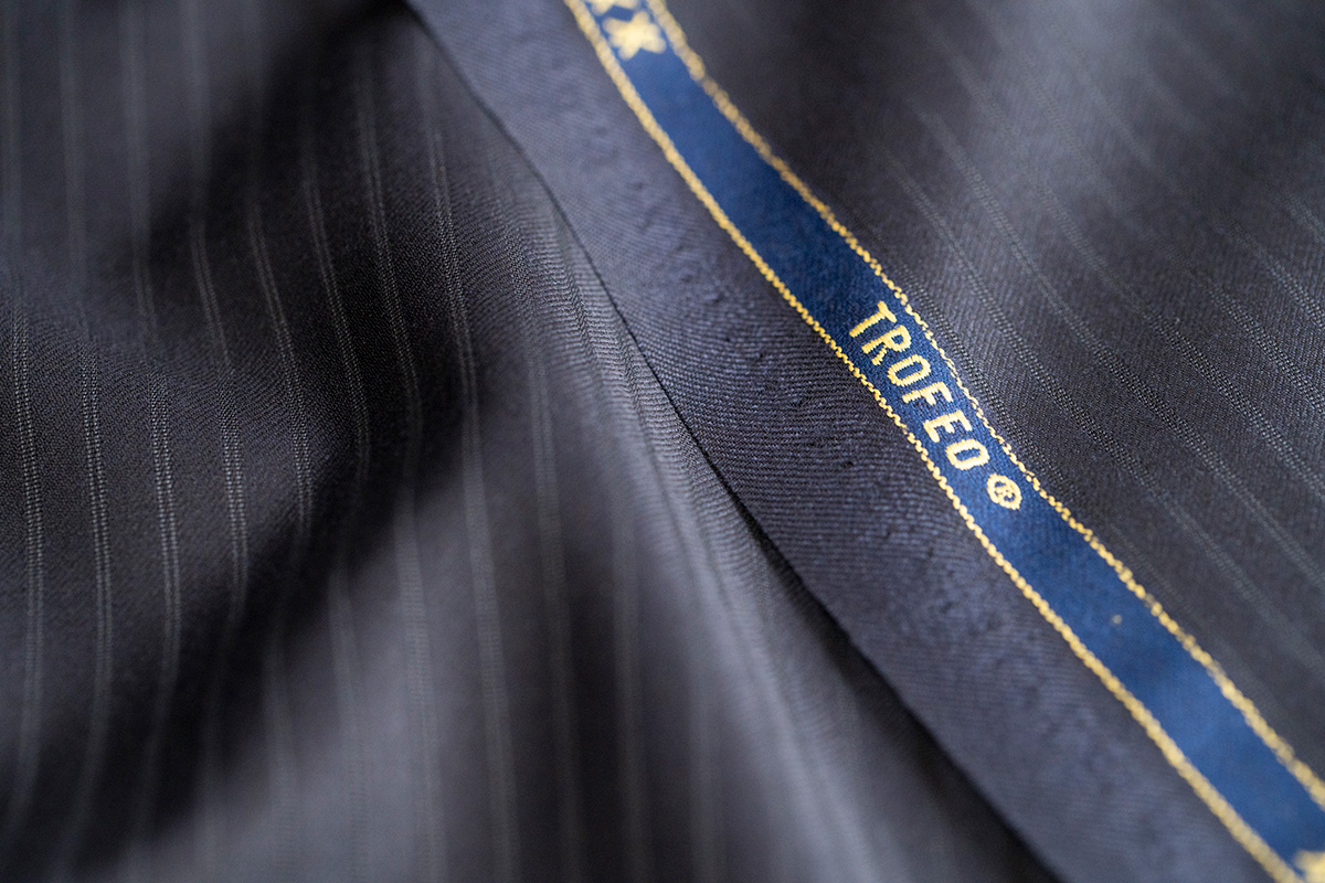 数多のゼニア生地の中で、最も日常使いに適した「トロフェオ」。2013年から原毛をSuper150’s相当(繊維の直径16ミクロン)へとグレードアップしたのを契機に、ゼニアを代表する高級レーベルとして定着化しました。素材の良さが即わかる生地の輝き、思わず頬ずりしたくなるようなソフトタッチが特徴で、柄や色味においても無地からシャドーストライプ、ヘリンボーンやグレンチェックなど選択肢が広く、ゼニアの中で最もバラエティに富む生地レーベルとなっています。今’19SSシーズンでは、ブルーストライプやブルーグレーといった新柄新色も登場。40~60代の方にはもちろん、20~30代の若手ビジネスマンからも非常に高い人気を集めています。