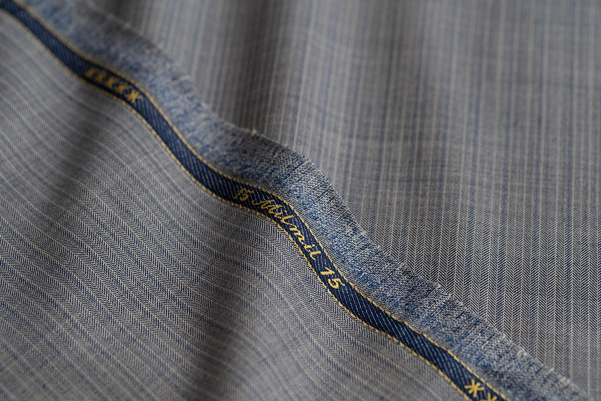 表情のあるヘリンボーン柄が上品な印象を与えます。グレーベースにサックスブルーのストライプを組み込むことで、落ち着いた雰囲気の中にクリーンな印象も感じさせてくれる万能な1着です。