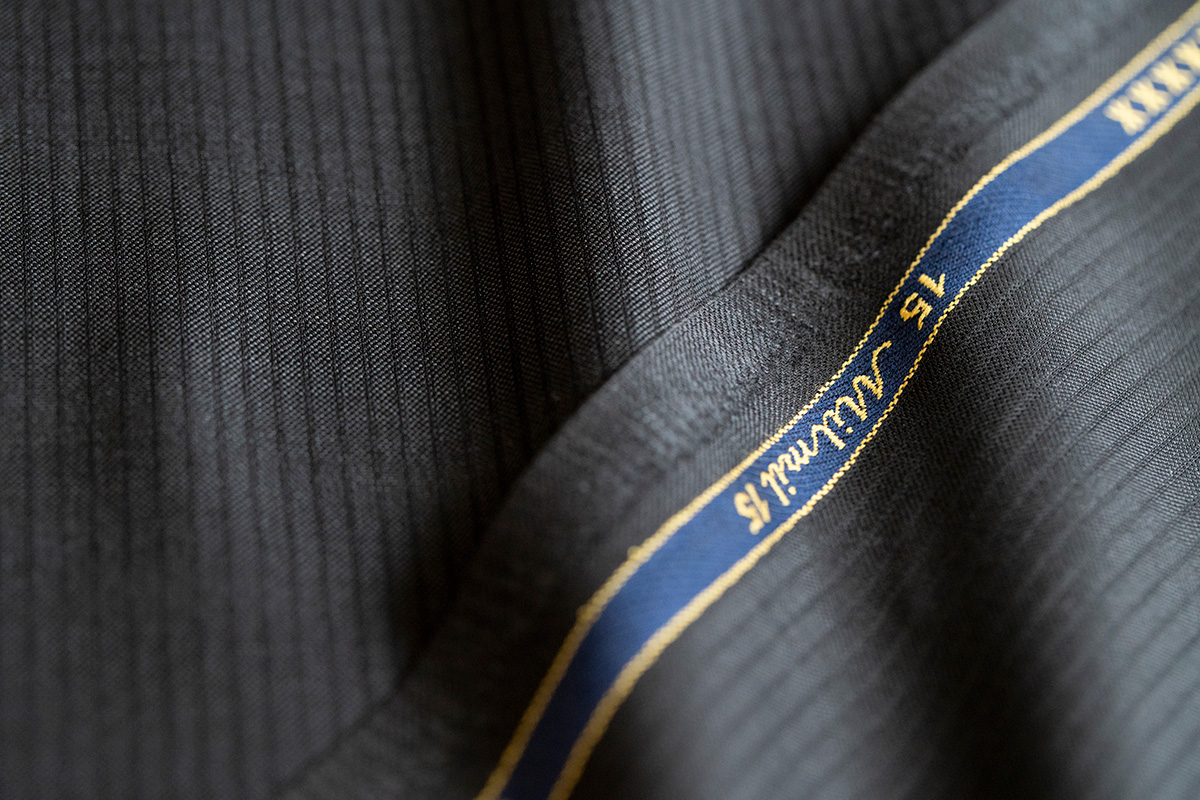ゼニア社全体でも年間生産量わずか5%という希少価値の高い「15ミルミル15」。最上級クラスのスーツを季節に関係なく、オールシーズンで着用できる点が最大の特徴です。レーベル名にある「15」とは、使用する繊維の細さ直径15ミクロン(Super170’s相当)に由来し、その超極細ウールで織る生地は極めて滑らか。艶、柔らかさ、そして動きに合わせて波打つ美しいドレープ感の全てにおいて、最高級ファブリックたるオーラを纏っています。今季は人気継続の濃紺を中心に、黒やチャコールグレーといった着用しやすい色味が多く、シャドーストライプなどのさりげないデザインが並びました。プレゼンや商談など此処ぞいう場面で、あなたをより魅力的に見せてくれる勝負スーツとして大きな力を発揮してくれるでしょう。