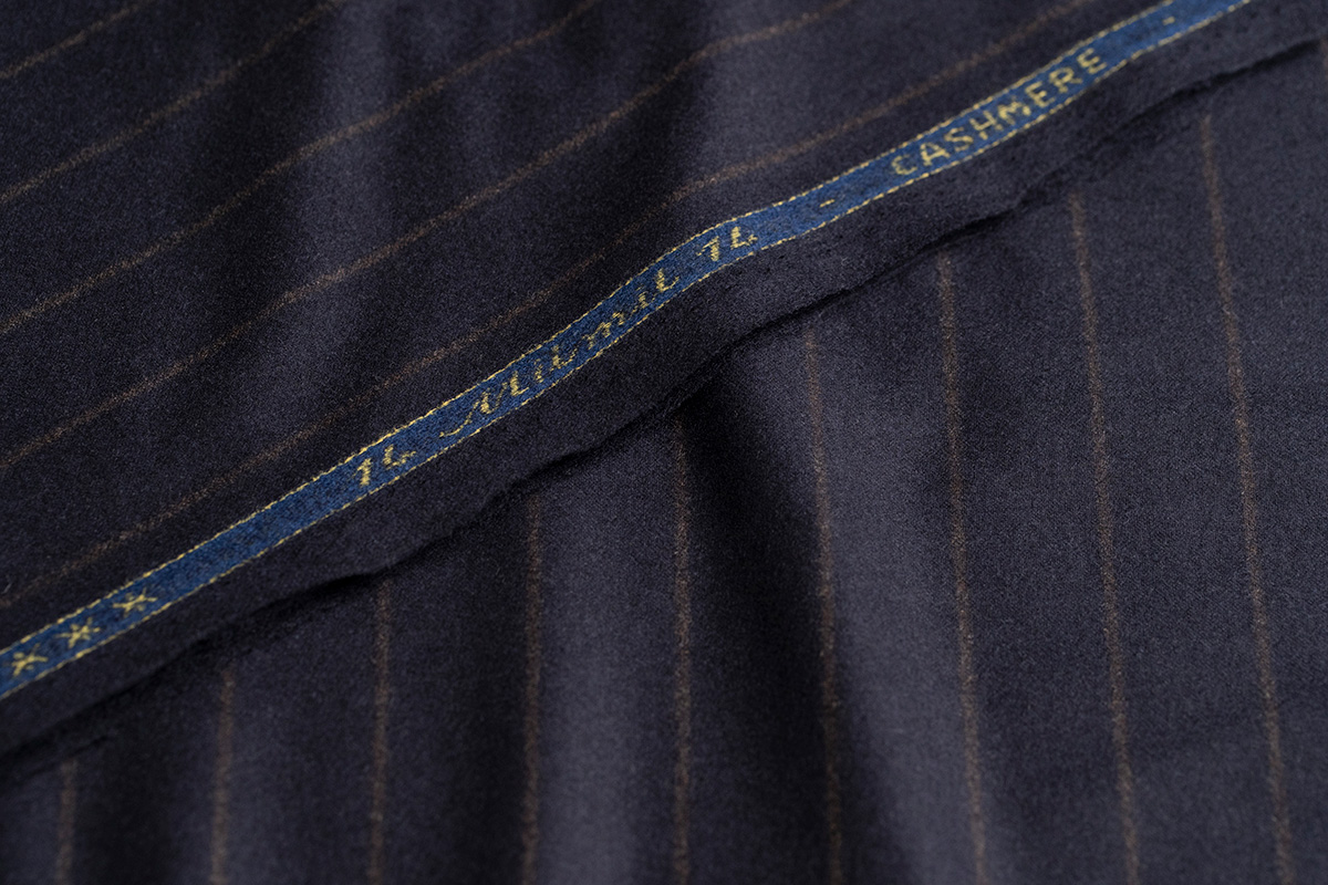 商品名 14Milmil14(秋冬) 色 ネイビー 柄 ベージュストライプ 説明 ウール89%シルク6%カシミア5% 価格 出来上価格250,000円 (税別) 15Milmil15のさらに上をゆく最上級レーベル、super190'sの"14Milmil14"。ウール、シルク、カシミアの三者混のトロトロ フワフワな生地が他を魅了させます。