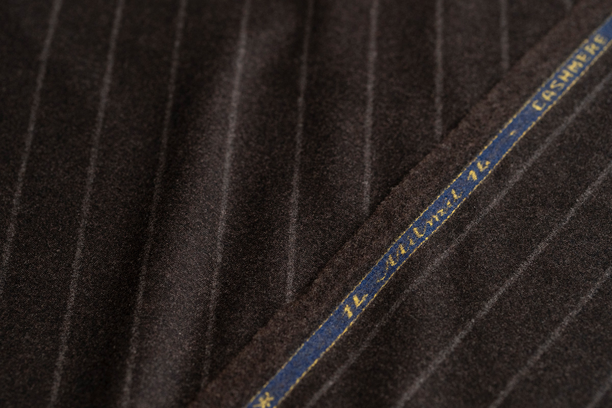商品名 14Milmil14(秋冬) 色 ブラウン 柄 グレーストライプ 説明 ウール89%シルク6%カシミア5% 価格 出来上価格250,000円 (税別) 15Milmil15のさらに上をゆく最上級レーベル、super190'sの"14Milmil14"。暖かみのあるブラウンベースであればこのレーベルの良さを最大限に引き出すことができ、最高級のブラウンスーツとなるでしょう。