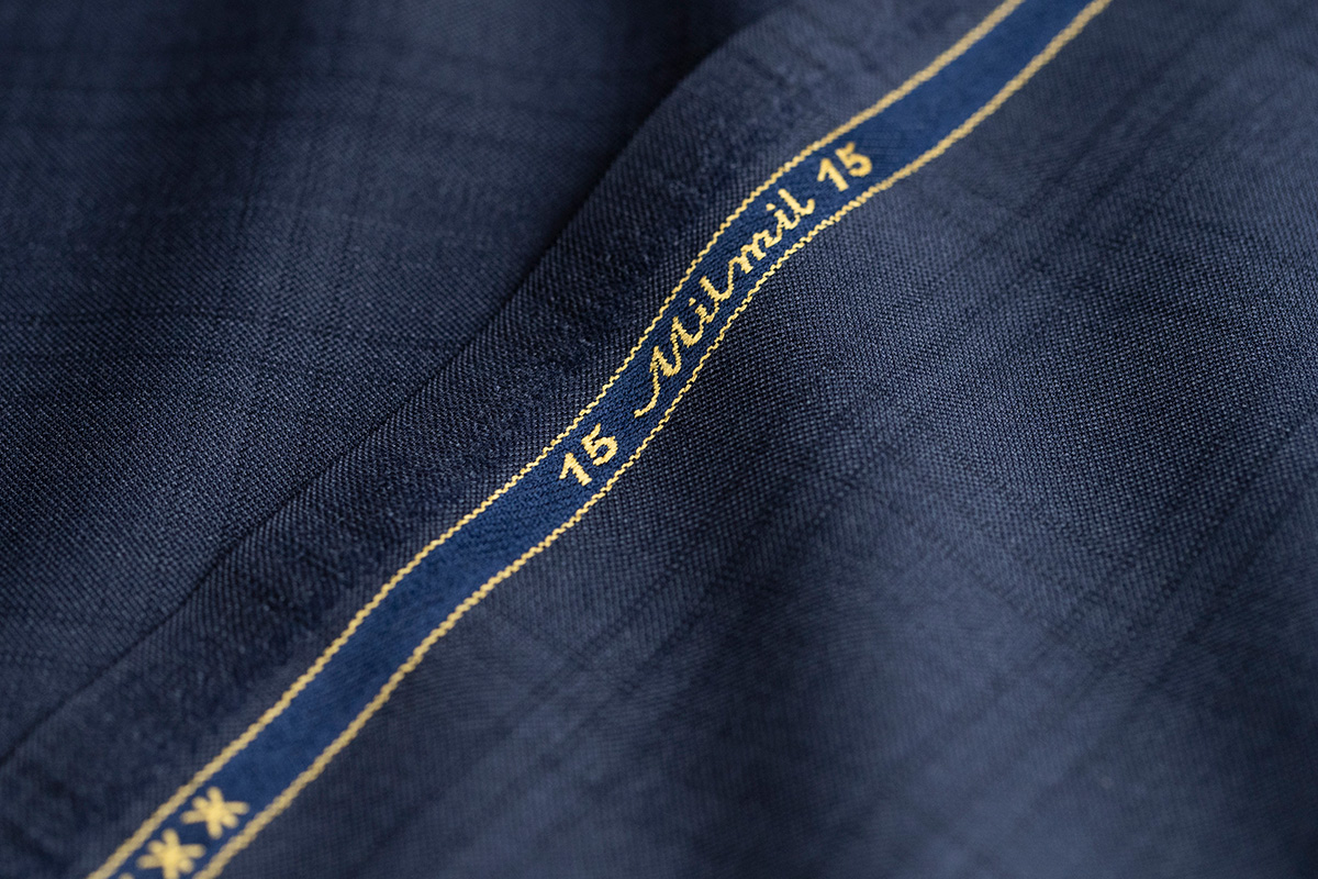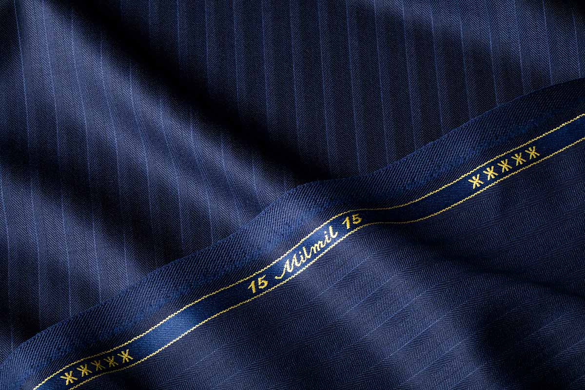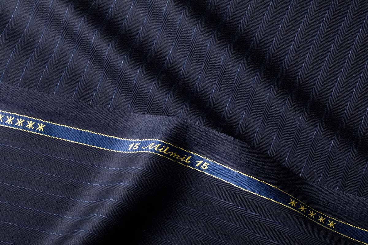商品名 15Milmil15 色 ネイビー 柄 ブルーストライプ 説明 ウール100% 価格 出来上価格180,000円 (税別) ゼニア社で年間全体の5%しか生産されない希少価値の高いsuper170'sの15Milmil15。1㎝ピッチに走るピンストライプと光の当たり方によって浮き出るシャドーストライプを組み込んだ今秋冬からのNewFabric。ネイビー×ブルーストライプが誠実で爽やかな印象を与えます。