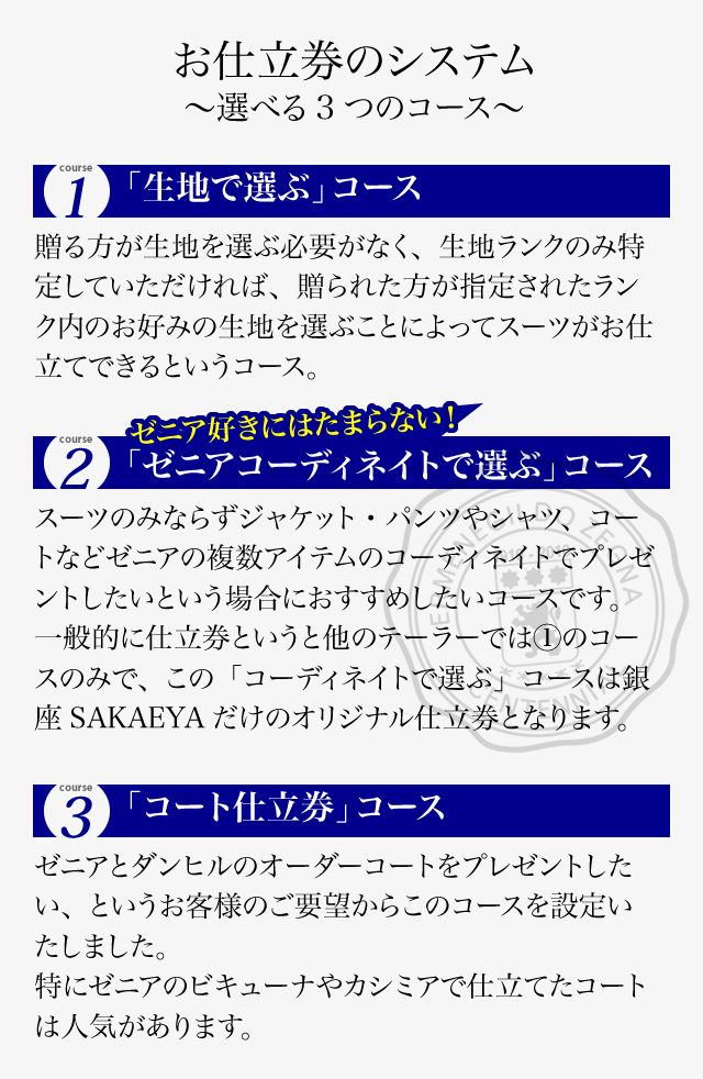 上記Dコースにゼニアのオリジナル裏地が付くコースです。