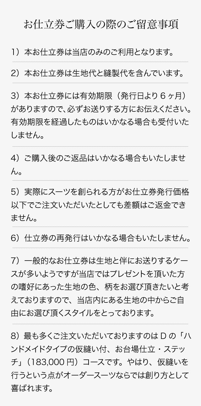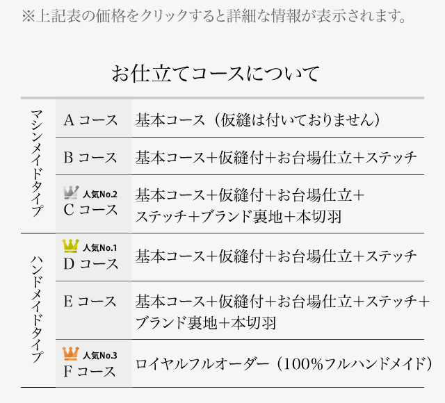 デラックス仕立(10,000円)+ステッチ(3,000円)+ブランド裏地(15,000円)+本切羽(3,000円)