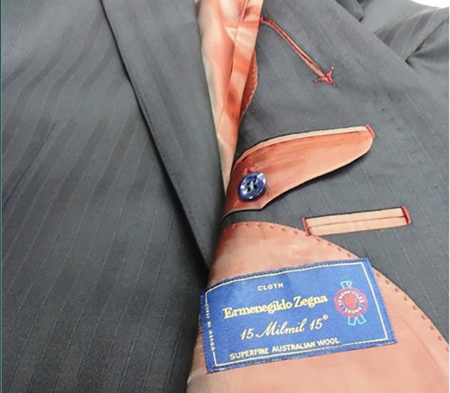 15ミルミルで作られたスーツは、生地そのものの品質と職人の高度な仕立ての技術が一体となって生み出されるもの。ゼニア社にとっても15ミルミルのスーツは、他のレーベルで作られたスーツと比べて特別な位置づけにあるようです。そうしたゼニア社の思いは、15ミルミルを使ったスーツに付けられるラベルからうかがい知ることができます。